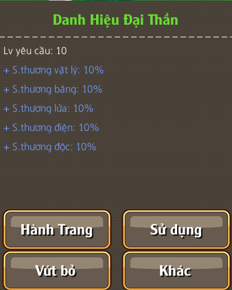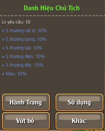 - - Khi các bạn có 50 chuông vàng + 1.000.000 vàng có thể đổi lấy Danh hiệu vĩnh viễn sau sau: